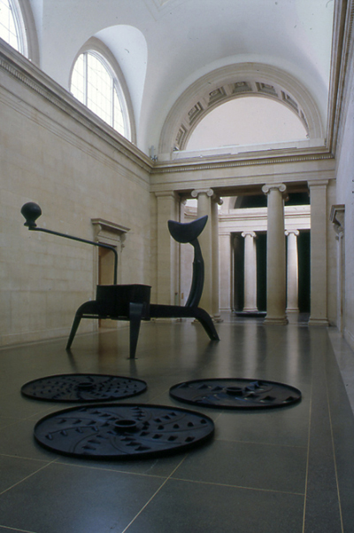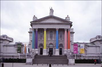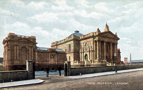 泰特美术馆建于1897年,这张照片显示的是泰特美术馆1906年的样子。(见图)博物馆通常会选择一些古老的建筑作为馆址,这样有一些好处,比如该建筑有一些名望,而且会给人一种权威的感觉,但同时也有不好的地方,有时在博物馆里展出的作品可能和建筑的外观不相符,所以,呈现在我们眼前的泰特美术馆和其他的博物馆都可能面临这样的挑战:就是怎样能够建立起一种摆放的模式,使展品和周围的环境很好地融合在一起。