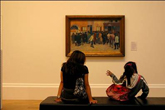 我们还感觉到:参观博物馆是一种社会经历。不知道在中国是不是这样,我们发觉在英国,大家参观美术馆或博物馆的时候,一般都是三五成群的,他们来到美术馆看一些作品,然后去想、去学习;不仅仅是安静地看,而且还互相交流,从别人身上获得自己想要的东西。