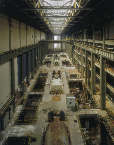 泰特现代美术馆所处的位置原来是一个发电厂(见图),大家看到的是涡轮机的位置,是发电机的核心,但现在已经变成了展示场所。