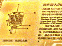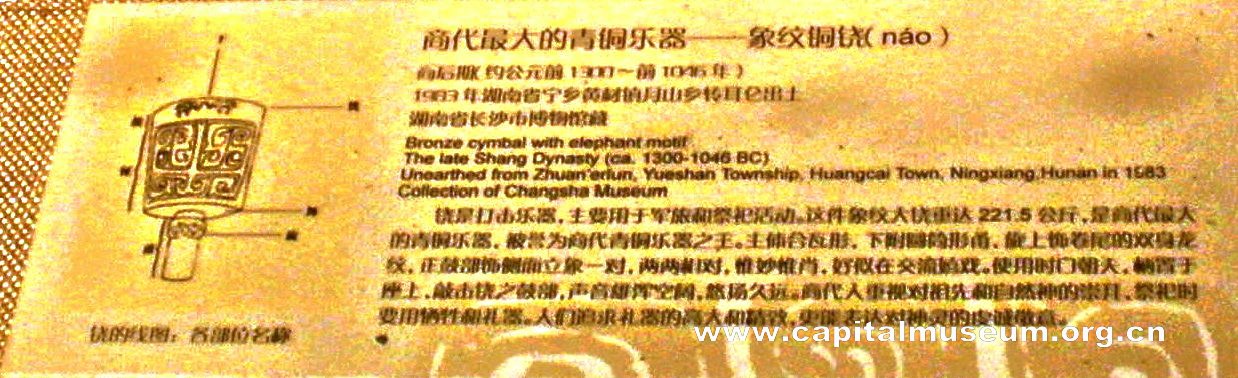 为了使观众了解象纹铜铙的结构,在说明牌的左侧还专门画出了一幅“线图”。这样,文章中提到的“甬”、“鼓”都是指的哪里,就一目了然了。