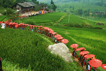 去瑶山的万贯冲、水栗幽、白水洞、草原村看梯田,有种别样的感受。一片片连绵起伏、阡陌纵横的梯田,造型别致、线韵优美、气势博宏。有道是“山有多高,田有多高”“天下大乱,此地无忧;天下大旱,此地有收”。
