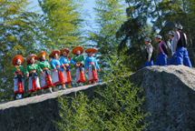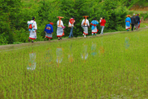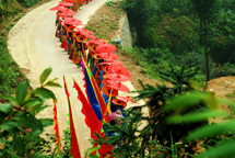 这山里的女人们特别爱美,她们的服饰一直承袭着他们先祖古老、新奇、繁褥、怪诞、传统的着装风格,个个着装艳丽绝伦,火辣抢眼,从头到脚都是花的世界、色彩的海洋。随着她们娇美的身影闪动在那绿意葱笼的山野,远远望去,俨然束束耀眼的山花。于是,我们便誉其为“花瑶”了。
