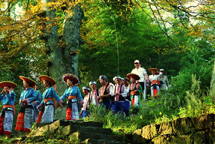 他们在湘西南隆回县境北部的大山深处。但其实花瑶很好找,只需从县城乘车赶往小沙江、虎形山,朝那大山远远望去,哪个山坳上立有参天古树,那里定是花瑶山寨。
