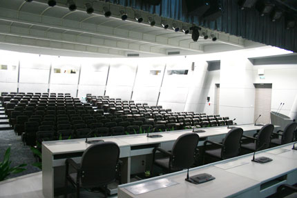 多功能会议厅位于圆形展馆地下一层,可举行各种会议,并提供面向公众的学术报告、知识讲座、电影放映等服务。配有多种语言同声传译、幻灯演示、专业音响、数字电影播放等设备。
