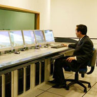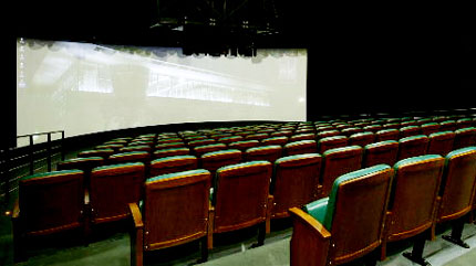 数字放映厅位于圆形展馆一层北侧,利用目前国际最高分辨率的大型投影机,在超宽视角的弧形银幕上,播放极具视觉冲击力的数字电影。目前播放的影片为《辉煌的北京》。
