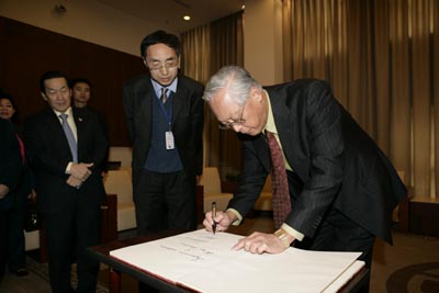 2006年4月14日上午10点,新加坡国务资政吴作栋在首都博物馆馆长郭小凌的陪同下兴致勃勃的参观了首都博物馆新馆展览,并为首都博物馆题字留言。