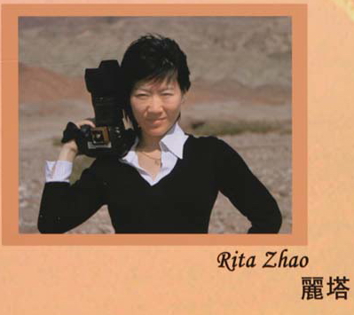 丽塔是来自好莱坞的美籍华人,国际著名的摄影家,现任中央电视台国际频道节目主持人。她以全系最高分的成绩毕业于美国公立大学排行第一的加州博克利大学艺术系。她是美国摄影家学会特邀主讲人、美国职业摄影家协会导师、有史以来第一位被美国旧金山湾区评为“杰出人才”和“家乡英雄”的华人。她的作品曾多次与摄影大师亚当斯和朗静山的代表作一同展出,备受各界好评。