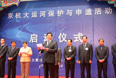 2006年5月12日上午9时至9时30分,京杭大运河保护与申遗活动启动仪式在首都博物馆礼仪大厅举行。仪式由全国政协文史和学习委员会副主任程世峨主持,全国政协副主席陈奎元同志,中共中央政治局委员、北京市委书记刘淇同志在仪式上发言,并为京杭大运河保护与申遗活动纪念标揭幕。启动仪式结束后,与会领导和来宾参观了首都博物馆有关展览。