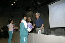 为纪念中国航天事业创建50周年,《镜头里的航天科技摄影展》于国庆前夕在首都博物馆正式开展了。同时,今天我们还有幸请来了中国工程院院士、“神舟”飞船总设计师戚发韧和中国工程院院士、战略导弹与运载火箭技术专家龙乐豪,为百名少先队员和广大观众作了两场生动的航天科普知识讲座。