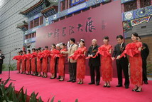 今天在首都博物馆礼仪大厅举行了隆重的开幕仪式。中国文联副主席、书记处书记冯远,中国书法家协会顾问刘艺,中国书法家协会分党组书记、驻会副主席兼秘书长赵长青,中国书法家协会副主席朱关田,爱华控股集团有限公司总裁项道铨,台州市公安局朱希望局长,韩国书艺协会理事长、代表团团长全明玉先生,还有韩国书艺协会常务副理事长、副事长出席了开幕式。