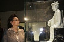 埃及总统夫人苏珊·穆巴拉克参观《古代瓷器艺术精品展》,在元代青白釉观音前驻足观赏