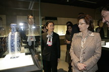 埃及总统夫人苏珊·穆巴拉克参观《古代瓷器艺术精品展》,与首博专家亲切交谈