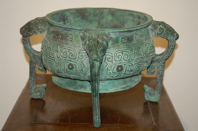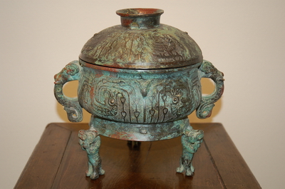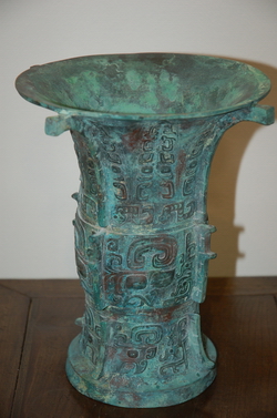 班簋是中国古代青铜器中一件蜚声中外的器物。此簋有四个兽首环耳,以内卷象鼻为足将簋身托起,造型奇特罕见。器腹内底的铭文多达一百九十八字,记述了贵族「班」追随「毛公」东征的史实,这一史料与秀丽的文字都具有重要价值。