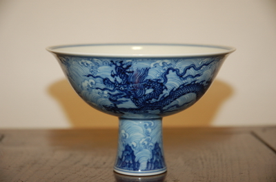 Blue-and-white Stemmed Bowl with Sea-wave and
