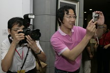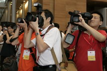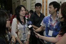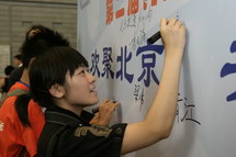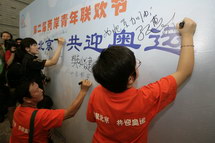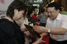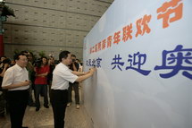 7月12日上午,由共青团北京市委、北京市青联主办的“喜迎北京奥运,展示中华文明——百名中国青年艺术家系列作品邀请展(2007)”在首都博物馆开幕了。团中央书记处书记、全国青联常务副主席尔肯江·吐拉洪、市委常委梁伟、全国青联秘书长安桂武、北京市团委书记刘剑等嘉宾出席了开幕式。参展艺术家及来京参加第二届两岸青年联欢节的500多名台湾大学生也参加了开幕式并参观了展览。