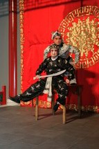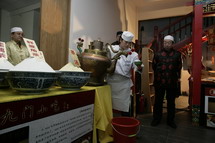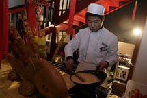 “年味”的首都博物馆民俗戏楼里,来宾们穿着传统的中式服装,围坐在旧式戏楼前,一边欣赏着折子戏《贵妃醉酒》、《天女散花》;一边品尝着京味传统小吃;耳边还不时传来扛糖葫芦草把的、剃头挑子、锔碗锢漏锅焊洋铁壶的游商小贩的吆喝和叫卖声……让来宾们亲身体验了一回传统的“年味”。