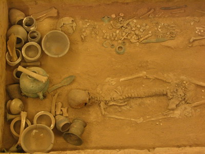 燕侯家族墓葬坑之一。墓主人男性,身高居然有180mm左右,在现在也属于高个子。旁边除了一些陪葬的器物,还有两个男孩,估计在七八岁。
