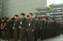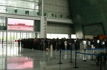 为表达对四川汶川大地震遇难同胞的深切哀悼,国务院决定,2008年5月19日至21日为全国哀悼日。首都博物馆党委、馆领导班子组织全馆职工于5月19日14:00准时来到首博礼仪大厅,观看中央电视台的直播节目,并与全中国人民一起在14时28分为地震遇难同胞默哀3分钟。