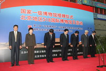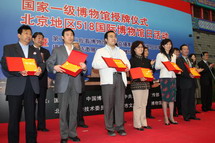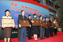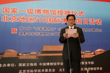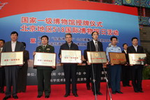 2008年5月18日上午,为迎接2008年国际博物馆日的到来,“国家一级博物馆授牌仪式暨北京地区5·18国际博物馆日活动”在首都博物馆礼仪大厅隆重举行。文化部部长蔡武,国家文物局局长单霁翔,中国科协书记处书记程东红,北京市委常委、市委宣传部部长、副市长蔡赴朝,中国博物馆学会理事长张文彬,北京市市政府副秘书长刘志,北京市文物局局长孔繁峙,国家文物局博物馆司司长宋新潮等领导出席了授牌仪式。