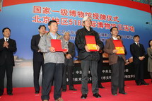 会上,宋新潮司长宣读了《国家文物局关于发布国家一级博物馆名单的通知》;蔡武部长就首批国家一级博物馆的评选工作做了总结;文化部、国家文物局和北京市的有关领导向首批包括首都博物馆在内的83家国家一级博物馆代表颁发了证书和标牌。