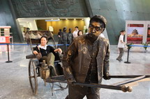穿着“铜”质衣服的铜人“雕塑”展示老北京风情