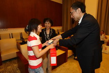 首都博物馆馆长郭小凌向北川县文博界同行赠送业务资料