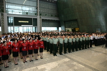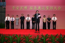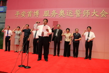 7月14日,首博吹响了确保平安奥运、平安首博的冲锋号,召开了“平安首博,服务奥运”誓师大会,全馆760余位职工共同誓师,一定给党和人民交上一份满意的答卷。会上,首博馆领导、一线工作职工代表、后勤部门代表、安保部门代表分别发言,市文物局领导也到会对首博提出了具体要求。首都博物馆馆长郭小凌代表全体首博员工保证,将以最饱满的政治责任感和工作热情,如期完成各项准备工作。
