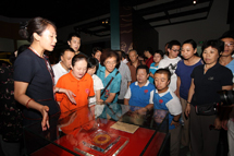 在观展过程中,残疾朋友被分为若干小组,在讲解员的引导下,兴致勃勃地以或听、或看、或触摸的方式仔细了解博物馆,体会展品的魅力所在。