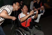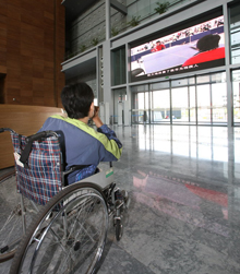 在首博工作人员和志愿者的服务下残障朋友参观无障碍