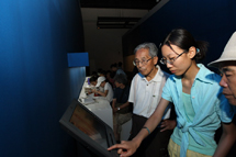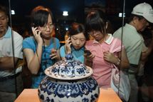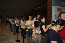 9月21日,距离奥运特展结束还有20余天,首博迎来了又一个客流高峰。虽然淅淅沥沥的小雨持续了整整一天,但这并未阻挡参观者热情的脚步。昨天上午八点半,还未正式开馆,首博门前就已经排起了长队,队伍在一楼大厅环绕了三周后又一直延续到《中国记忆——5000年文明瑰宝展》的门前。有的游客的排队时间甚至长达一小时。长长的队伍始终秩序井然,首博的服务人员耐心地疏导着游客,“请您谅解,让您久等”,亲切的话语伴随着服务人员真诚的微笑,让游客们宾至如归。