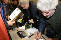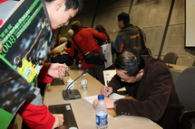 中国摄影家协会副主席、新华社摄影部体育新闻采编室主任罗更前先生在讲座间隙为观众签名