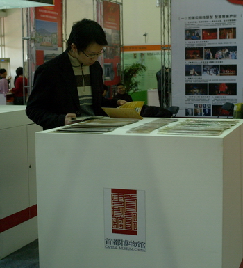 2008年11月29日至12月1日,首都博物馆参加了在中国农业博物馆举办的《博物馆及相关产品与技术博览会》。首博展区通过成果展览,宣传品发放,多媒体播放,触摸屏互动等多种方式的展陈方式,吸引了众多业内外人事流连驻足。