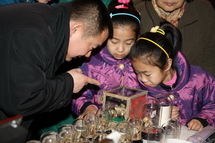 博物馆特邀十几位著名民间手工艺家现场表演技艺。艺术家们各显神通,身边围满了观众。鼻烟壶内精细至极的绘画是如何画上的?小小毛猴的四肢是什么做的?它们浑身的白毛又是什么做的?一张弯弓用什么料,花费多久?太多的为什么在这里您可以找到答案。