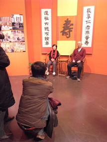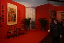 在“拜年的礼”、“拜师的礼”、“祝寿的礼”区域,布景区设为老北京客厅样子,观众可自由拍照。