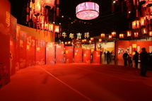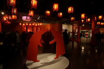 此外,展厅内的布景处处烘托红火节庆气息,“百家姓”的大红灯笼贯穿展厅始末,走马灯悠悠地转动。