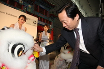 开幕式在金狮锣鼓中开始,张庆善副主任委员与史登科博士先后为展览开幕致辞,史登科博士向王文章副部长赠予了2008“BMW中国文化之旅”成果展画册,王文章副部长、张庆善副院长、周小璞副主任委员、郭小凌馆长、史登科博士和吴佩德总裁共同为展览开幕剪彩。