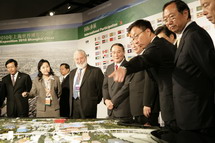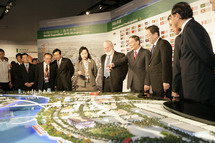王岐山等领导和贵宾观看世博会区域沙盘 |