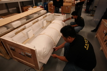 文物的运载到拆卸包装,是体力活更是个精细的活。为保障文物安全,每件文物都配有独立的囊匣,其外贴有文物信息资料和照片,便于馆际间交接工作顺利开展。