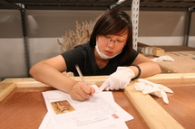 点交文物的过程中,交接双方工作人员需要有顺序、有步骤地对文物的残损状况进行检查,以文字、图片等方式记录下来,并要经过双方确认。接触文物要戴上手套,近距离直接观看文物要戴上口罩,这些都是保障文物安全的措施。