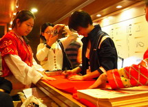 在亲手绣制国旗的同时,工作人员还会为观众讲解国旗的相关知识,让广大观众朋友们更加了解国旗、了解国旗法以及悬挂国旗的意义,知国旗、爱国旗、敬国旗,切实感受祖国60年辉煌发展历程。之后参与的观众参与签名与首都博物馆共庆伟大祖国的60年大寿。