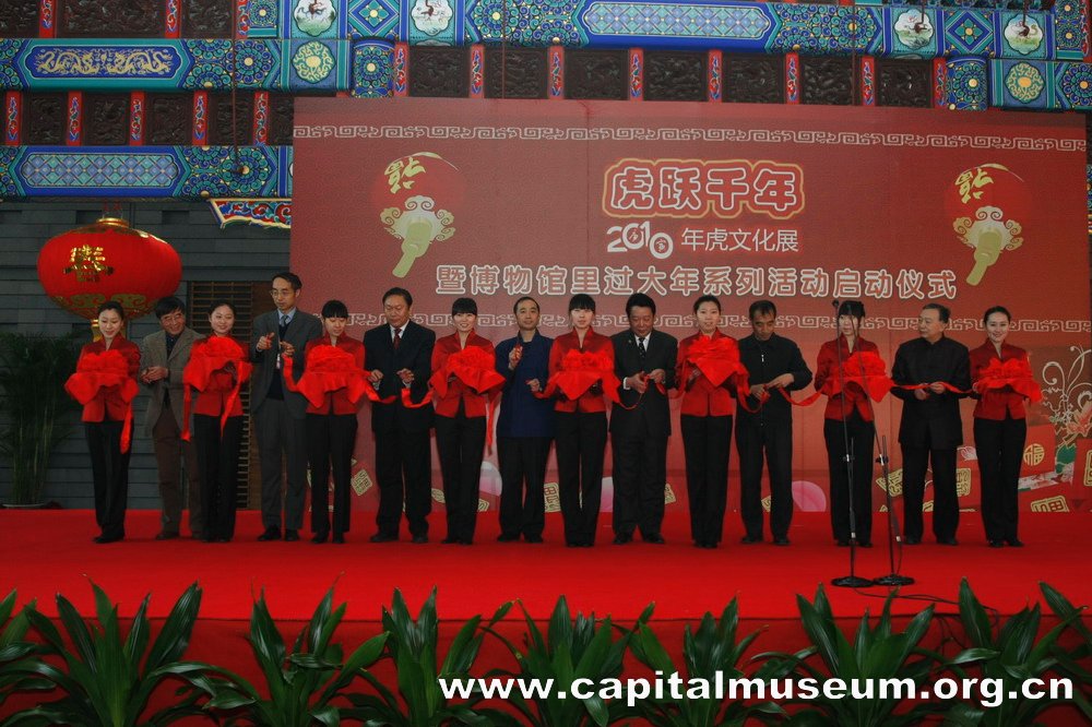 农历庚寅年春节将至,首博推出了一系列喜迎虎年的活动。2010年2月4日上午,在首博礼仪大厅举办了“虎跃千年——2010年虎文化展暨博物馆里过大年活动启动仪式”,至此,由首博主办的虎年迎新春系列活动正式拉开序幕。