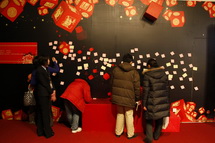观众将对来年的希望,对野生虎保护的寄语写在希望之墙的贴纸上 |
