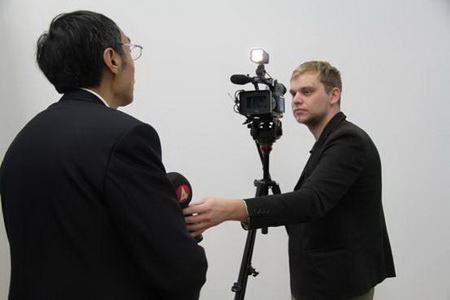 郭小凌馆长接受马尔默电视台的采访,采访新闻当晚播出