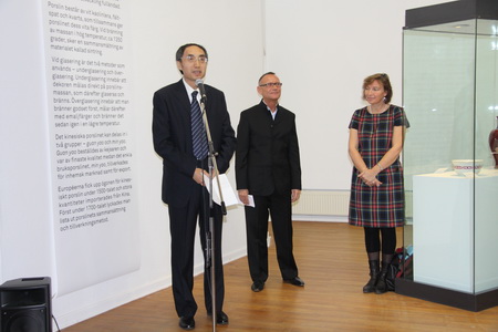 开幕仪式设在简洁明快的中国瓷器展展厅中。克里斯坦森馆长宣布仪式开始,简述了瑞中展览合作的过程与意义,盛赞首都博物馆为这次展览提供了出色展品。