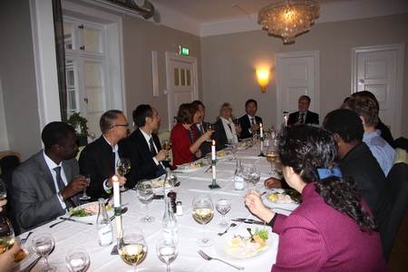 马尔默市长在市内饭店宴请陈大使与首博代表团一行,双方频频为中瑞长期的友谊、博物馆的交流干杯。