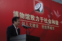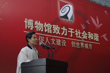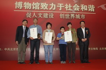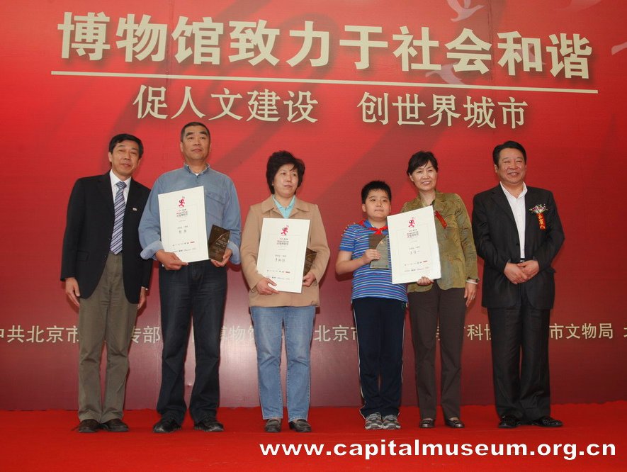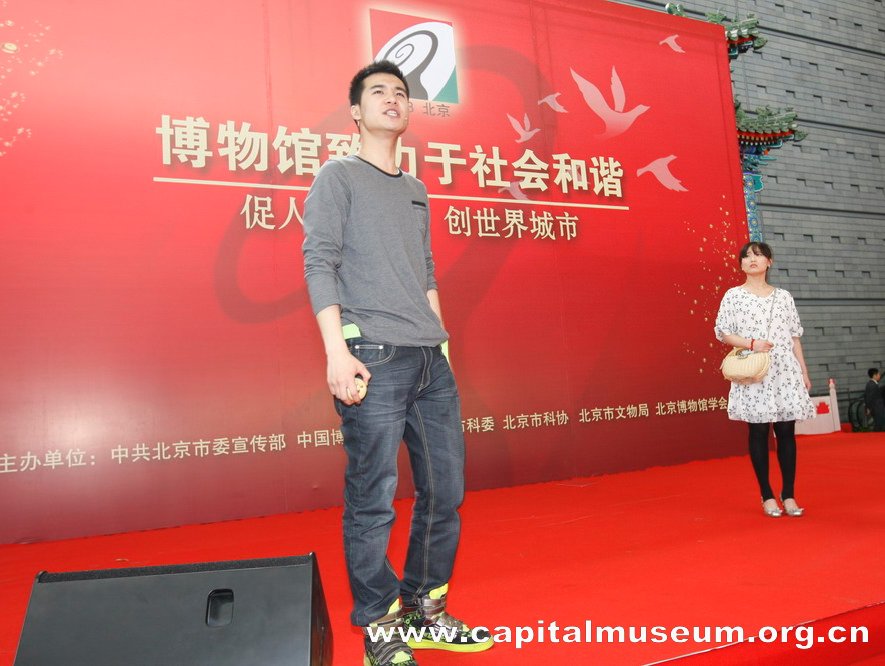 5·18国际博物馆日宣传活动启动仪式作为5·18国际博物馆日活动的主线将博物馆日全部活动串联起来,使得启动仪式活动丰富多彩,极具吸引力。首先,国家文物局顾玉才副局长致辞,对北京地区博物馆为推动全市文化事业发展所做贡献给与了充分肯定,也希望博物馆能再接再厉,继续为北京市文化事业的繁荣和发展做出贡献;然后,为在第二届“清华工美杯”博物馆纪念品大赛和“我看博物馆”摄影大赛获奖单位和选手颁奖;随后,首都博物馆安理副馆长宣布“首博艺术团”成立,并由首博讲解员表演了自编自导的《讲解员之歌》,将整个启动仪式活动推向高潮;最后,舞台小品剧《一对鸽子哨》精彩亮相,并拉开了由北京市文物局主办的“文博一家人”电视系列情景短剧的序幕。