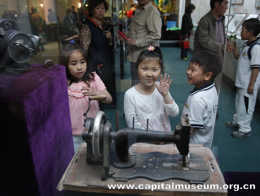 首博作为北京一座地志性博物馆,对北京地区独有的民族民俗文物情有独钟。在这次近代文物的展品中,清代时期的红木雕花八仙桌、北方婴儿车,民国时期的盛锡福帽盒、同仁堂小儿脐风散广告、"七五"血案的血衣,以及西德尼•D•甘博拍摄的1908—1932 年的老北京照片等一系列极具时代特征的文物,将带给观众既熟悉又新鲜的复杂韵味。特别是清朝的老字号招幌,这是2008年首博征集到的一批重点文物,共39件,从类别看主要包括票号、钱庄、当铺、银楼等金融行业,也有少量药铺,酒楼等实业类字号。大都用绸缎棉麻制成,在招幌中涉及蔚泰厚、蔚盛长、蔚丰厚、宝丰隆、合盛元、天成亨等票号名称。这批招幌年代跨度大,上起道光五年(1825年),下至宣统元年(1909年),几乎涵括票号从发展兴盛直至衰败的整个历史过程,是研究北京金融发展历史的重要佐证。在这次展览中,首博就选取了其中具有代表性的几件文物向观众展出,以反映旧时京城商业繁荣的时代气息。