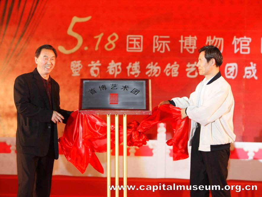 北京市文物局孔繁峙局长和北京市博物馆学会张大桢理事长为首博艺术团揭幕 |