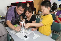 活动过程中,孩子们不仅听讲座,更是饶有兴趣的同专家老师进行现场问答,参与互动小实验,还同爸爸妈妈一同完成了纸板风电机模型的制作。