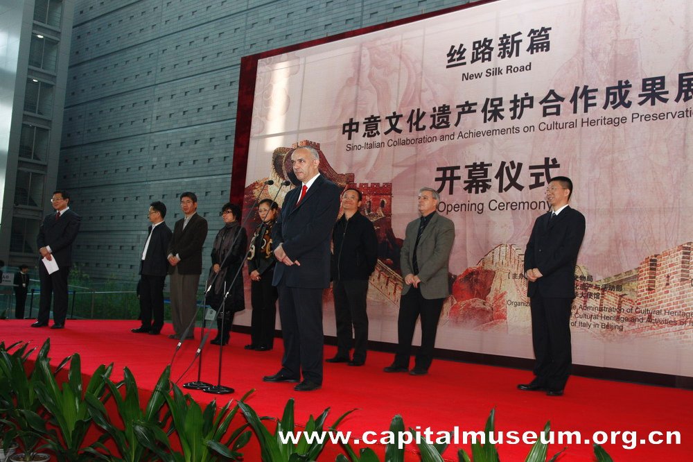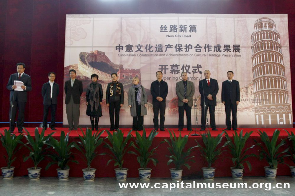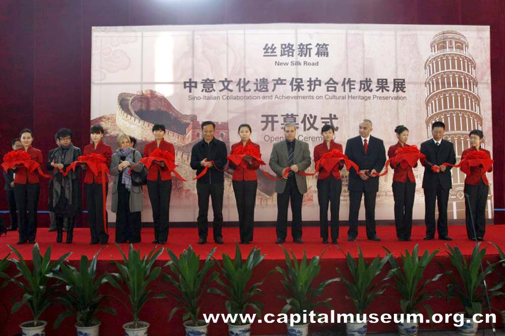 为庆祝中意建交四十周年,扩大中意文化遗产保护合作与交流,由国家文物局、意大利文化遗产与活动部及意大利驻华大使馆主办,中国文化遗产研究院和首都博物馆共同承办的“丝路新篇——中意文化遗产保护合作成果展”,于2010年10月25日上午10时,在首都博物馆一楼礼仪大厅隆重开幕。